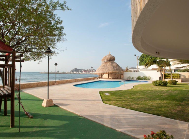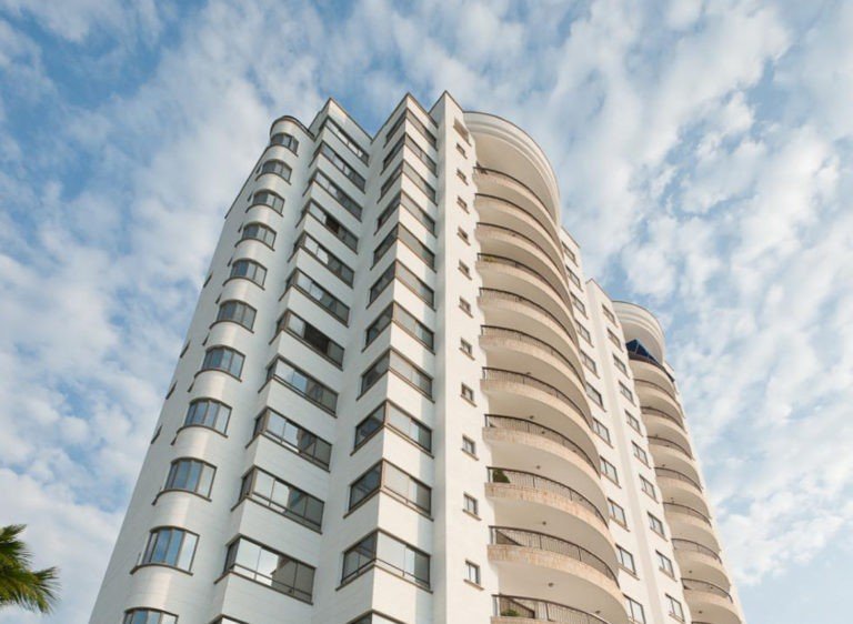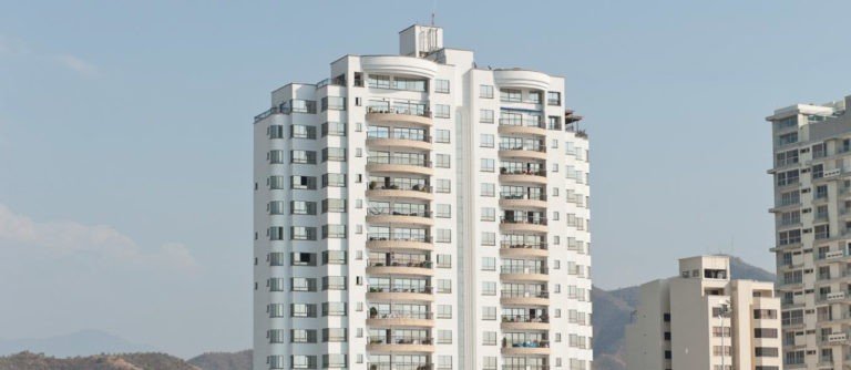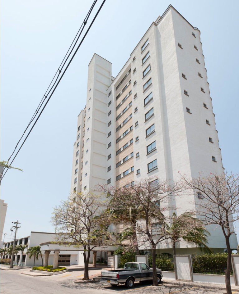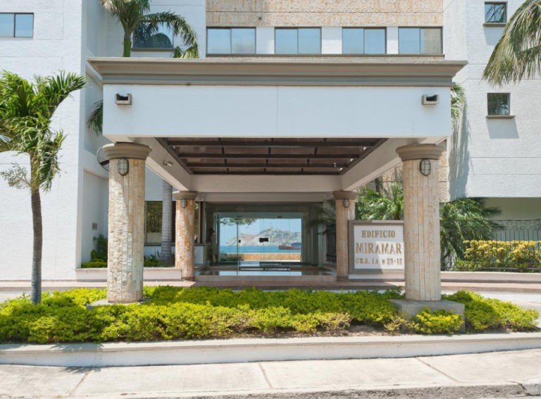 El edificio Miramar es una torre de 14 pisos con 25 apartamentos, ubicado en primera línea de playa, en el central y exclusivo sector de Bellavista.